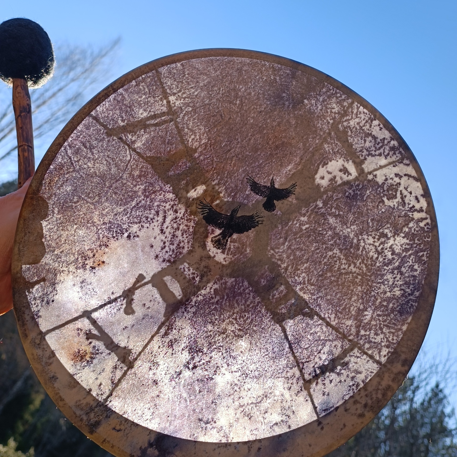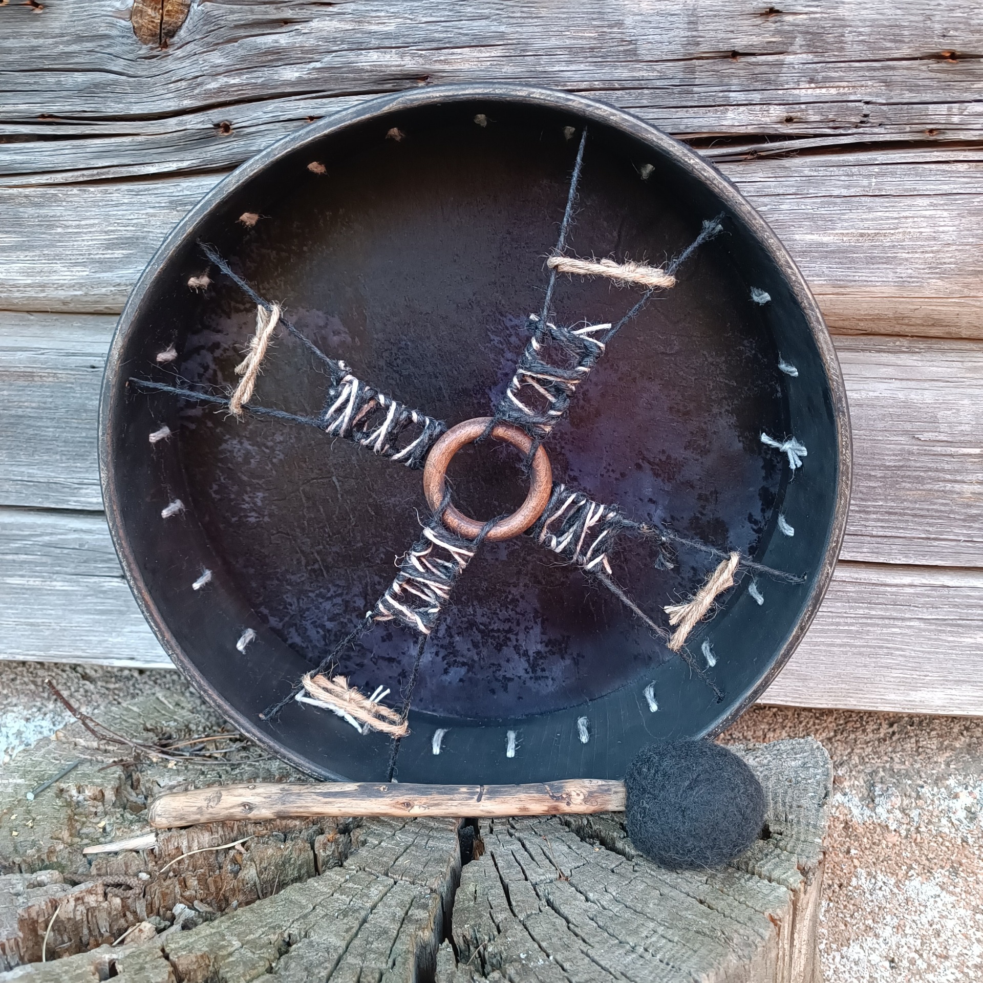 Mukana tulee rummun hoito-ohje ja ohjeistus shamaanirummun vihkimiseen.