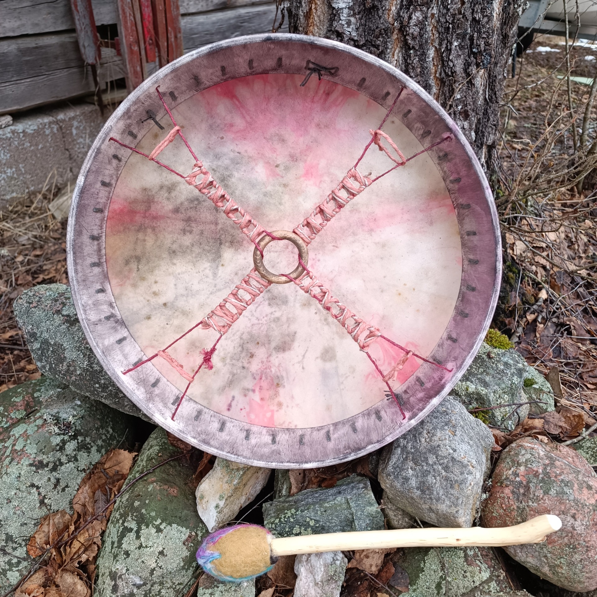 Mukaan tulee rummun hoito-ohje ja ohjeistus shamaanirummun vihkimiseen