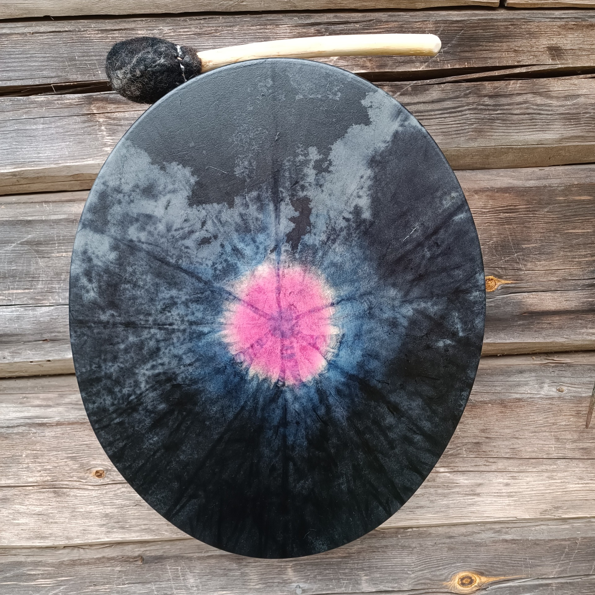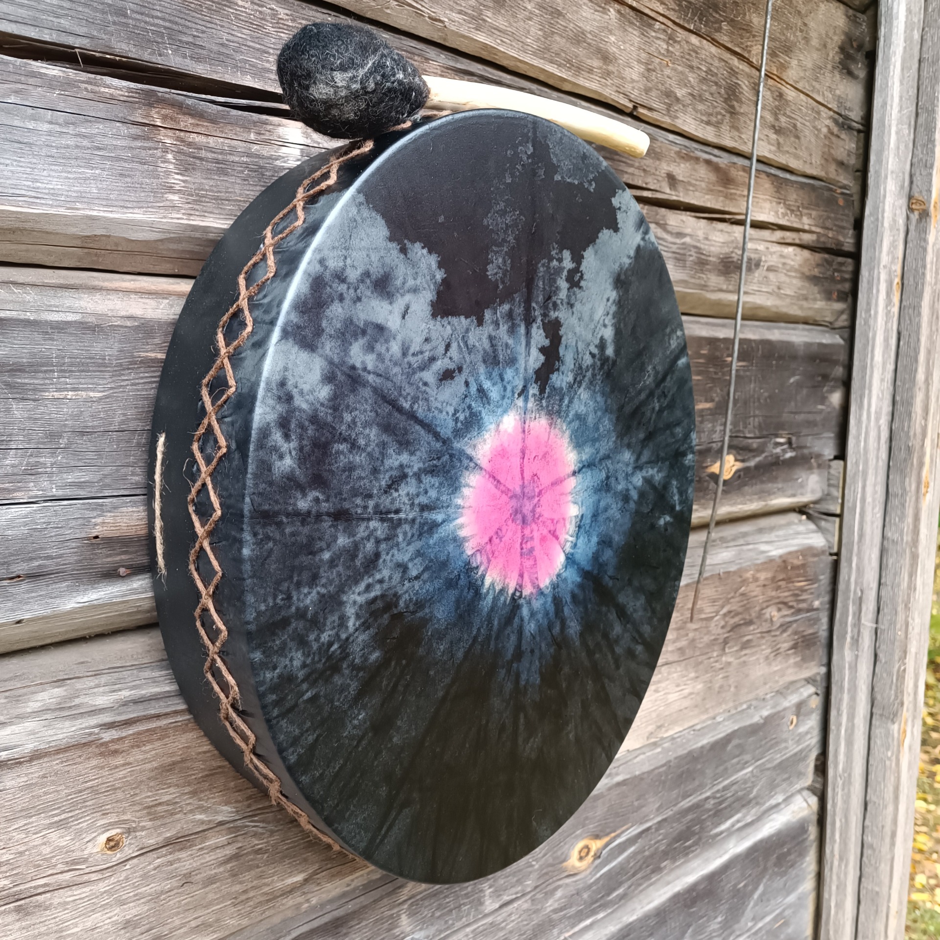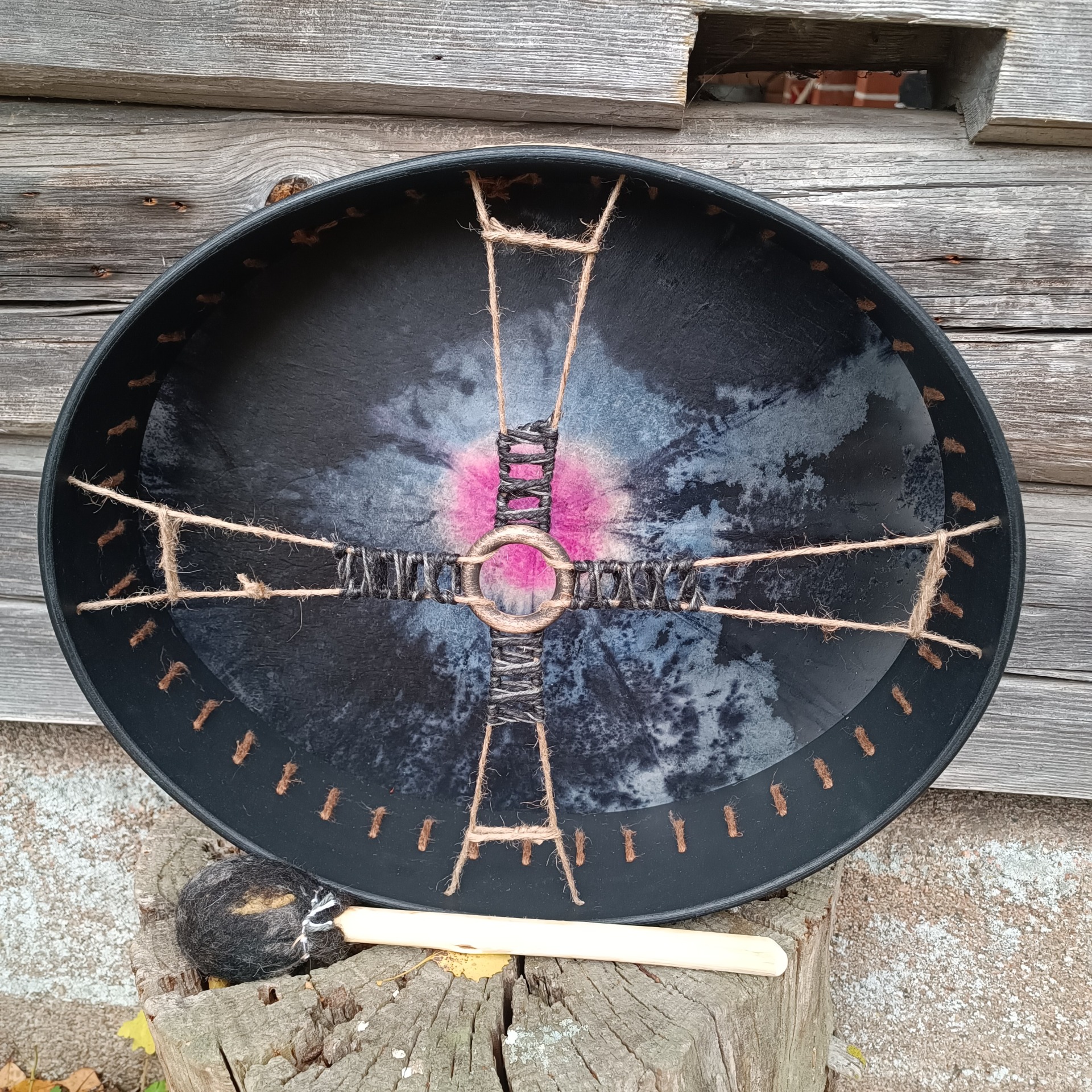 Mukana tulee rummun hoito-ohje ja ohjeistus shamaanirummun vihkimiseen