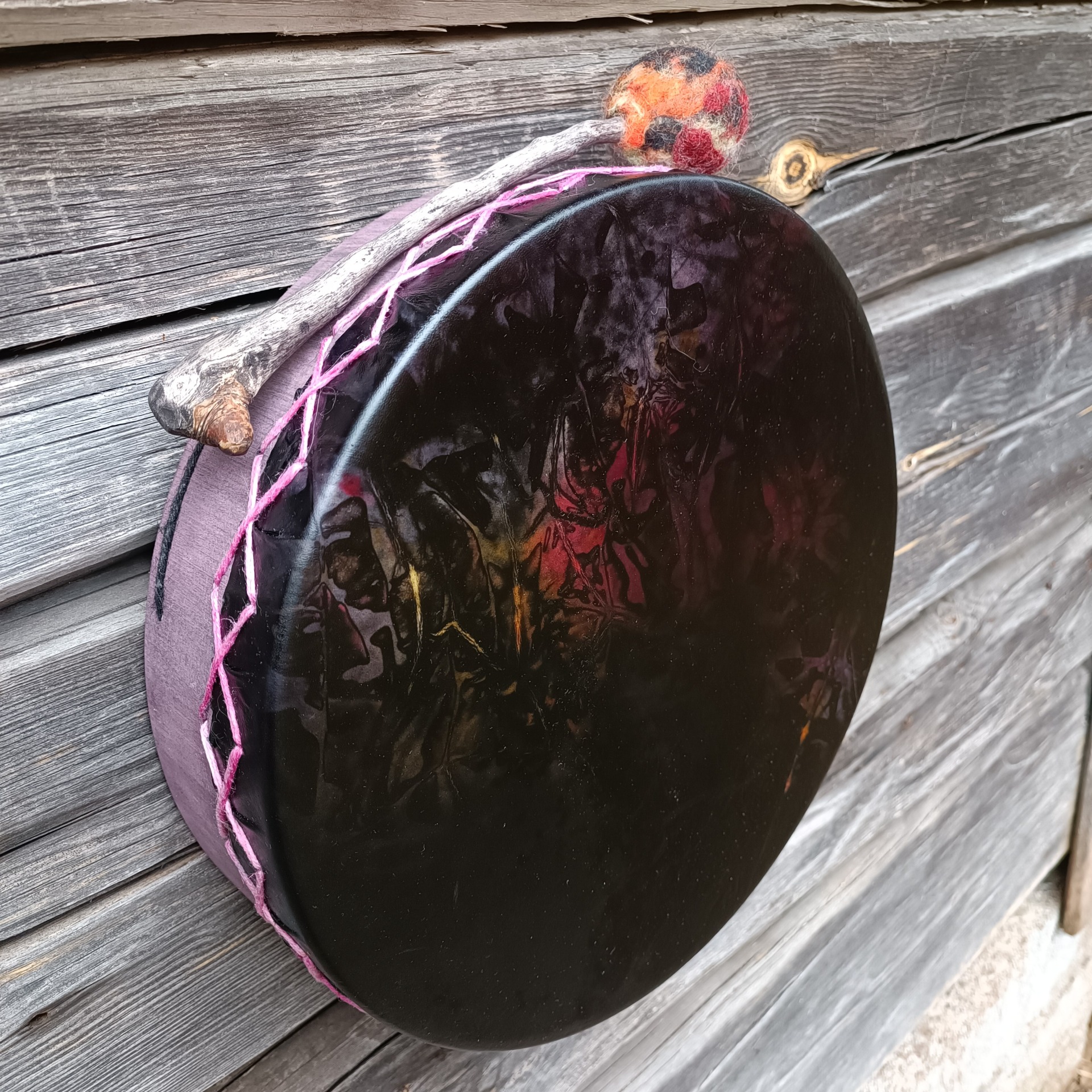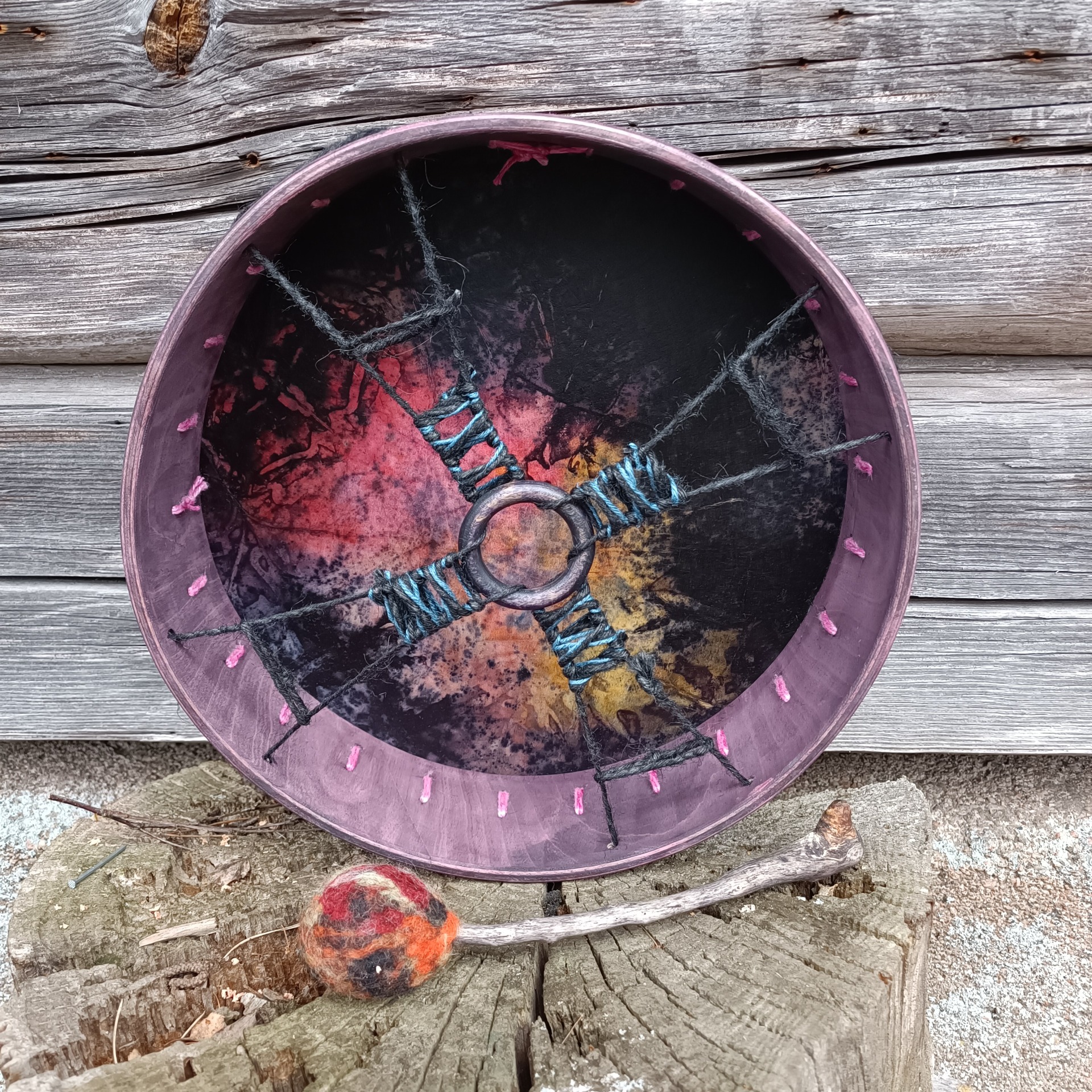 Mukaan tulee rummun hoito-ohje ja ohjeistus shamaanirummun vihkimiseen