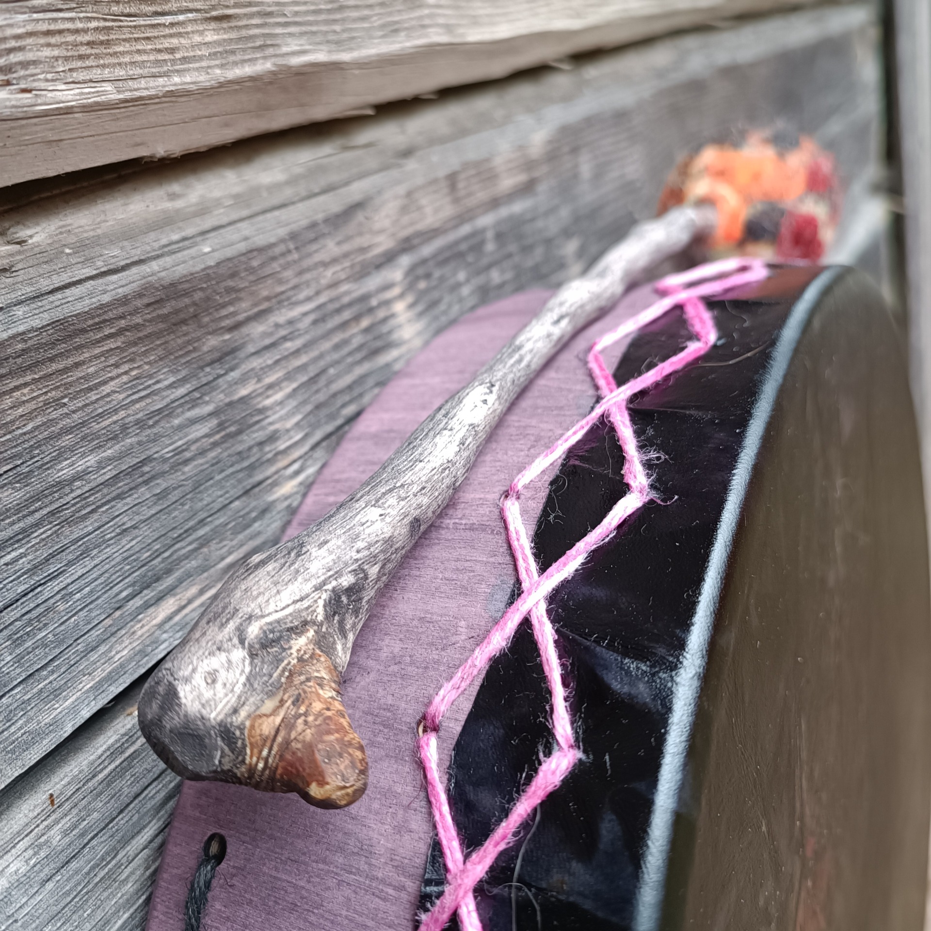 Soittokapulana todella kevyt koivunjuuri, soittopää lampaanvillasta märkähuovutettu.