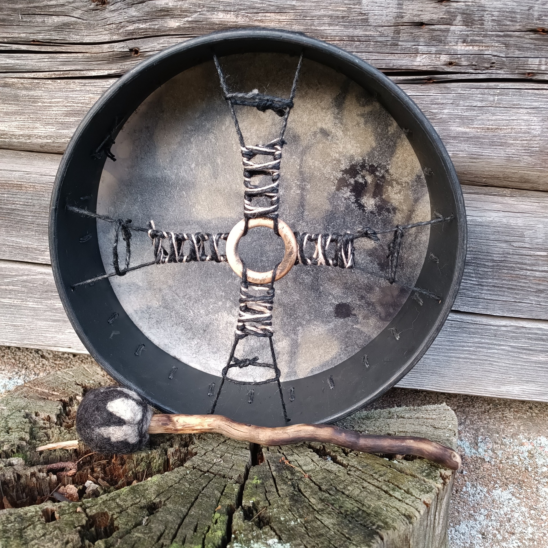 Mukaan tulee rummun hoito-ohje ja ohjeistus shamaanirummun vihkimiseen