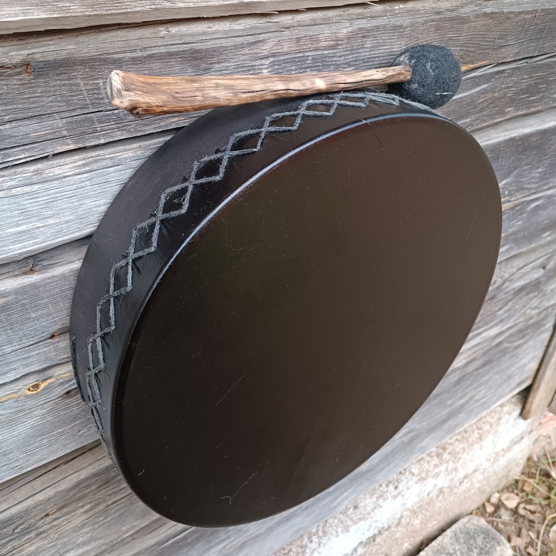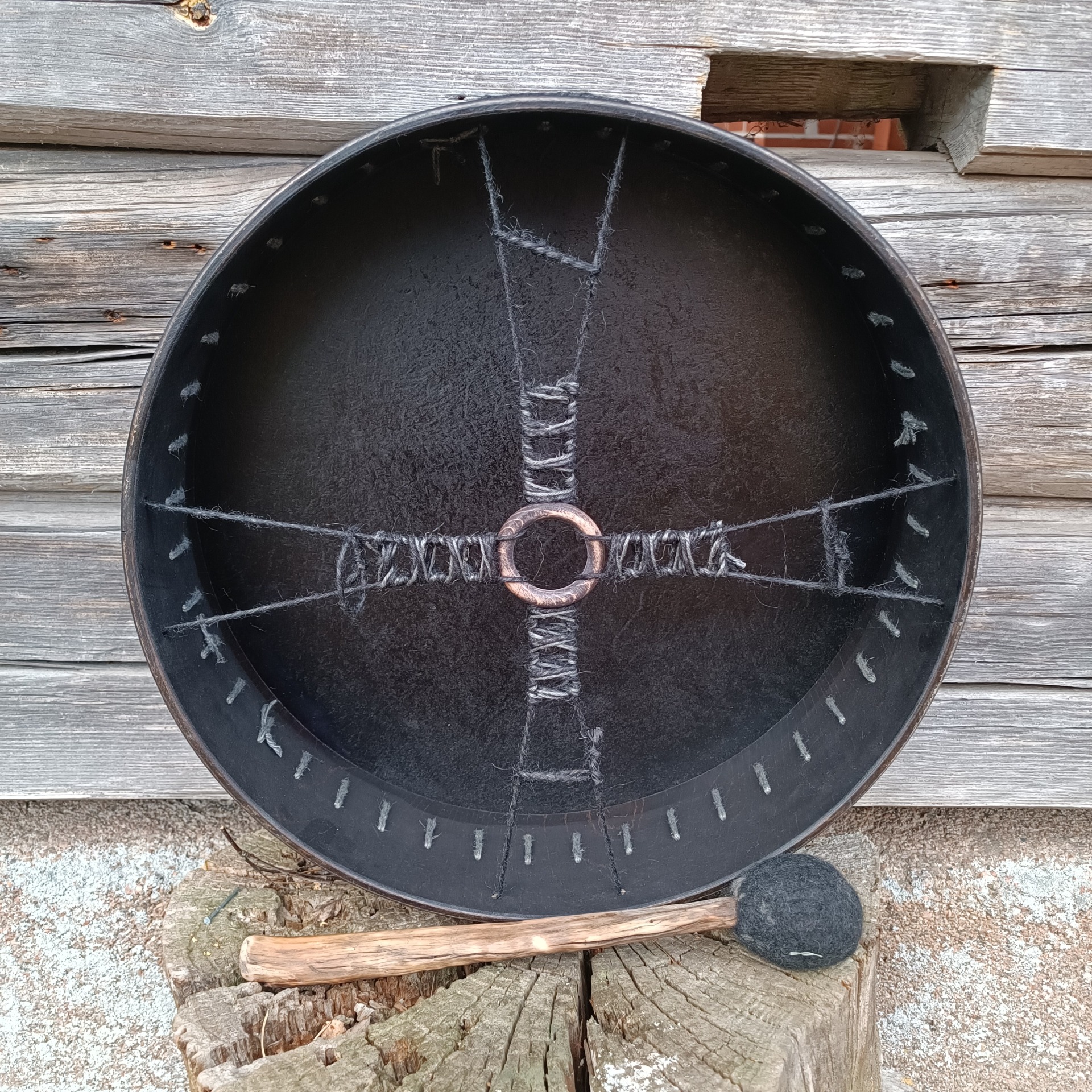 Mukana tulee rummun hoito-ohje ja ohjeistus shamaanirummun vihkimiseen.