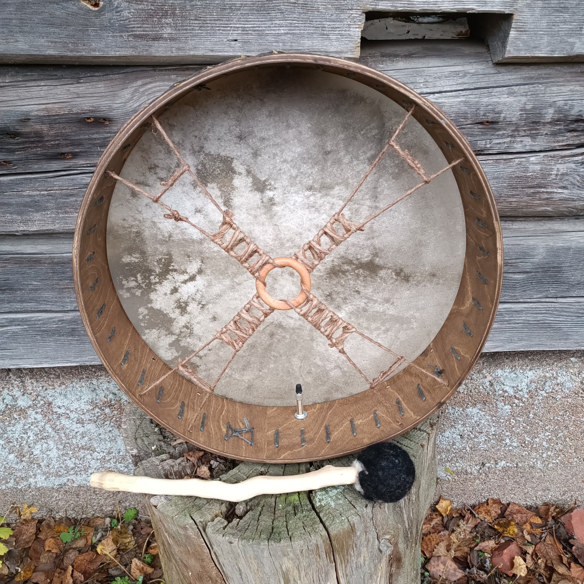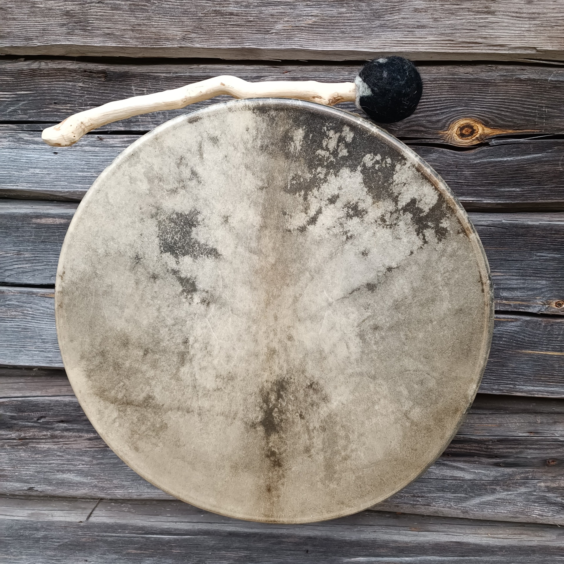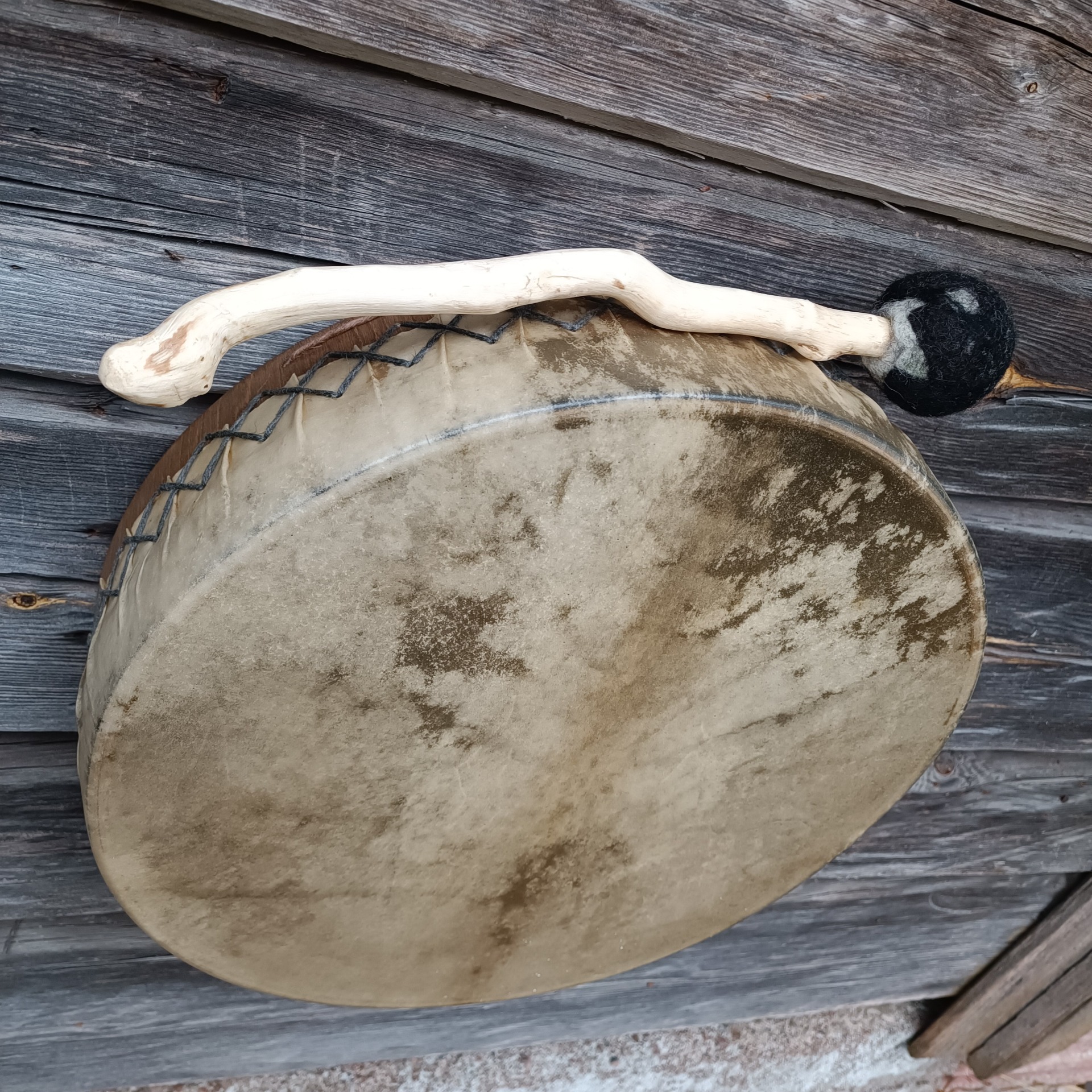 Rummun mukana tulee ilmapumppu, rummun hoito-ohje ja ohjeistus shamaanirummun vihkimiseen