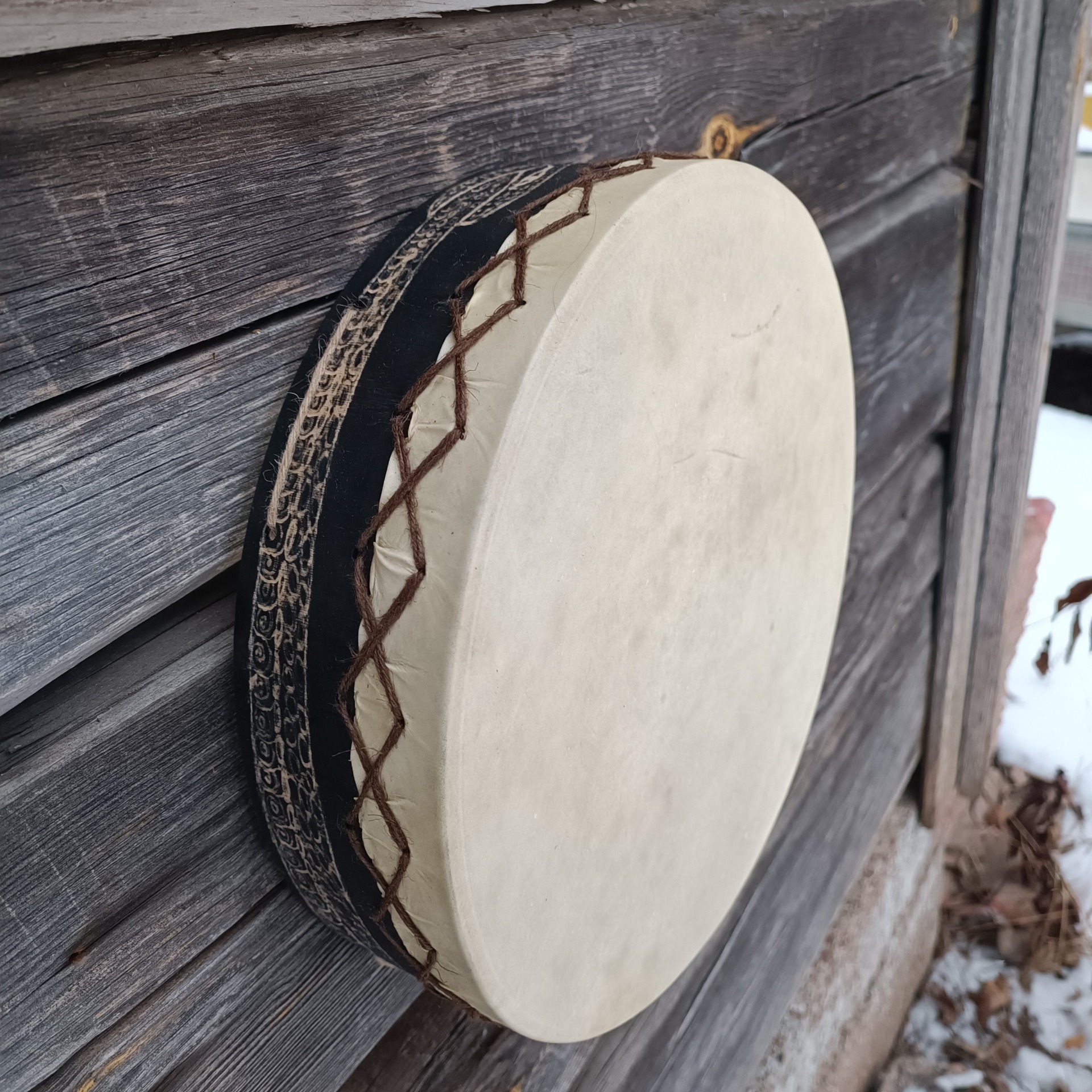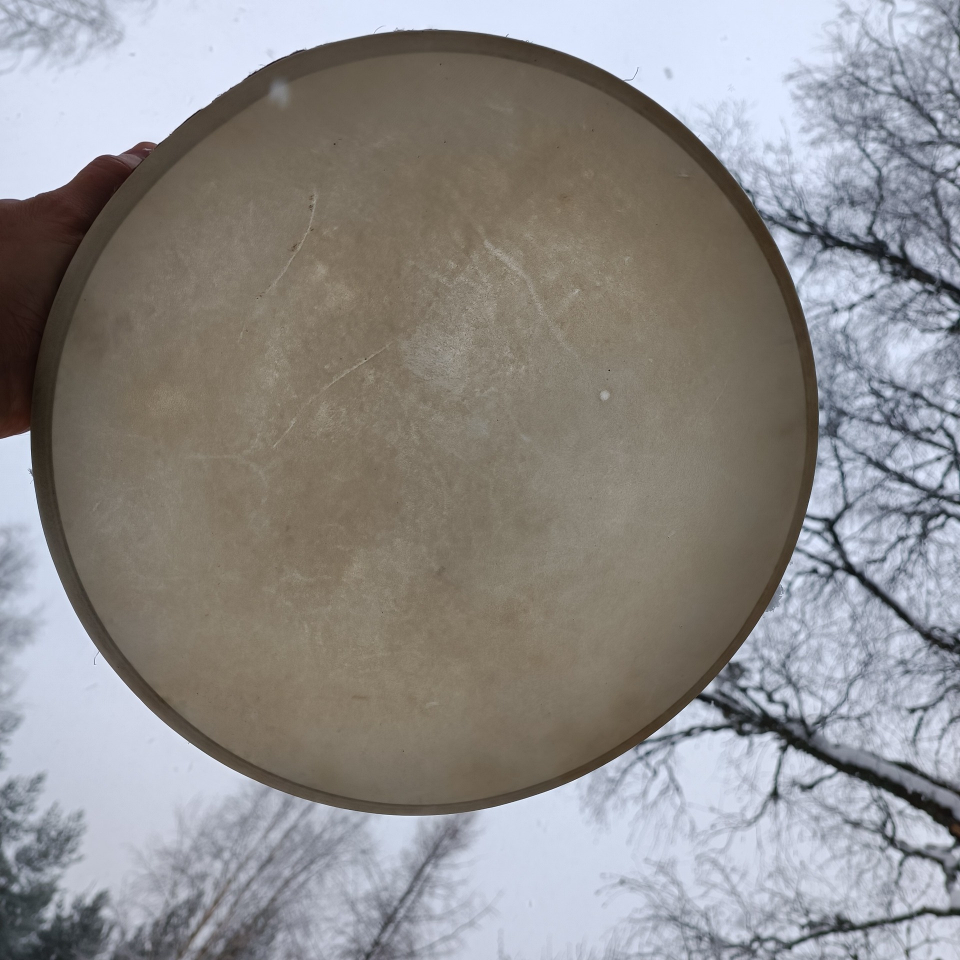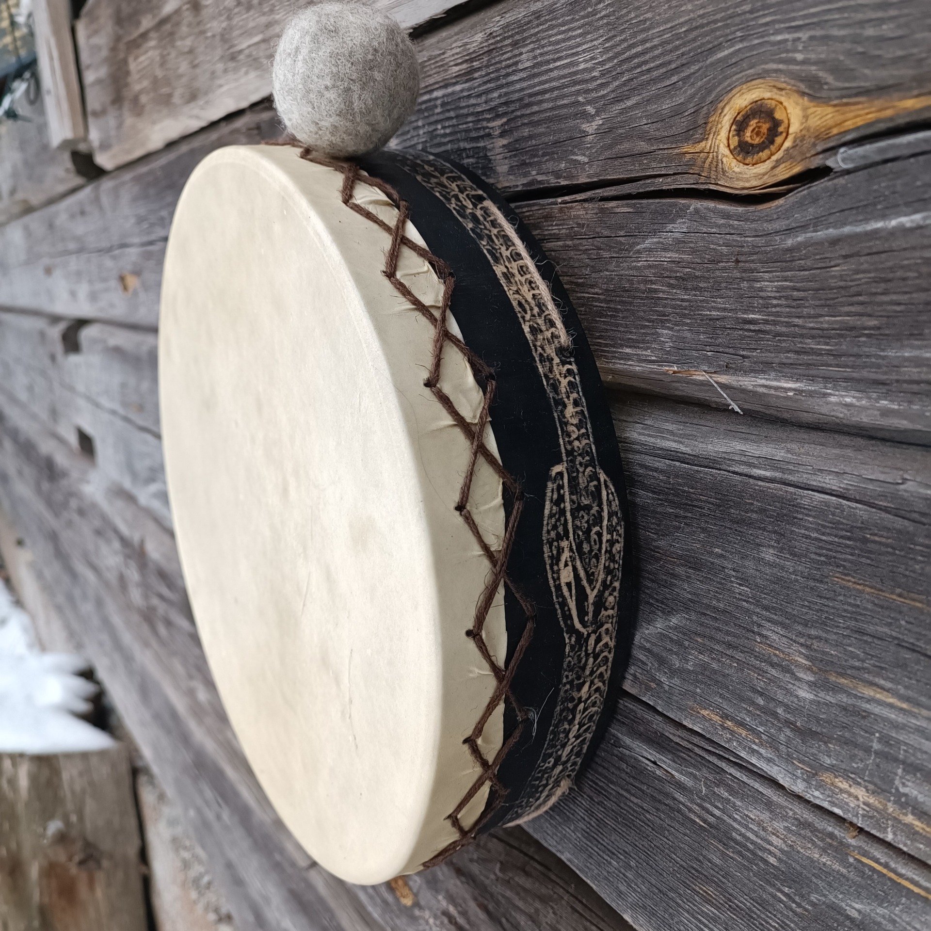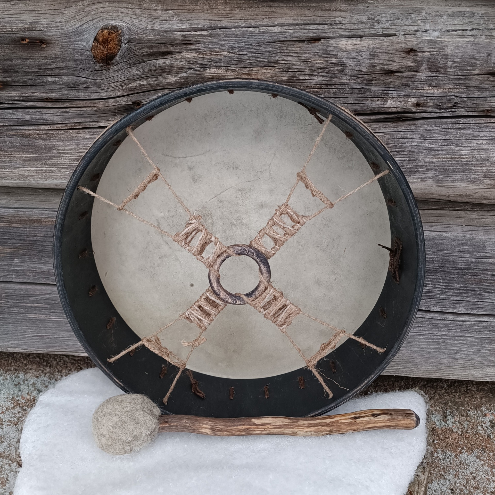 Mukana tulee rummun hoito-ohje ja ohjeistus shamaanirummun vihkimiseen.