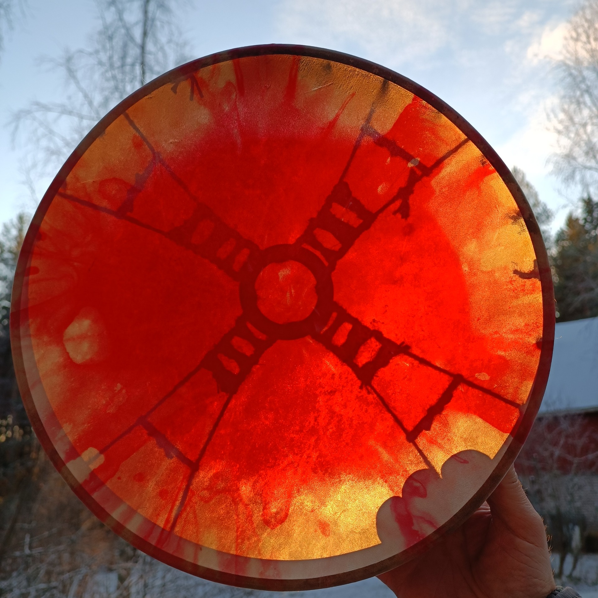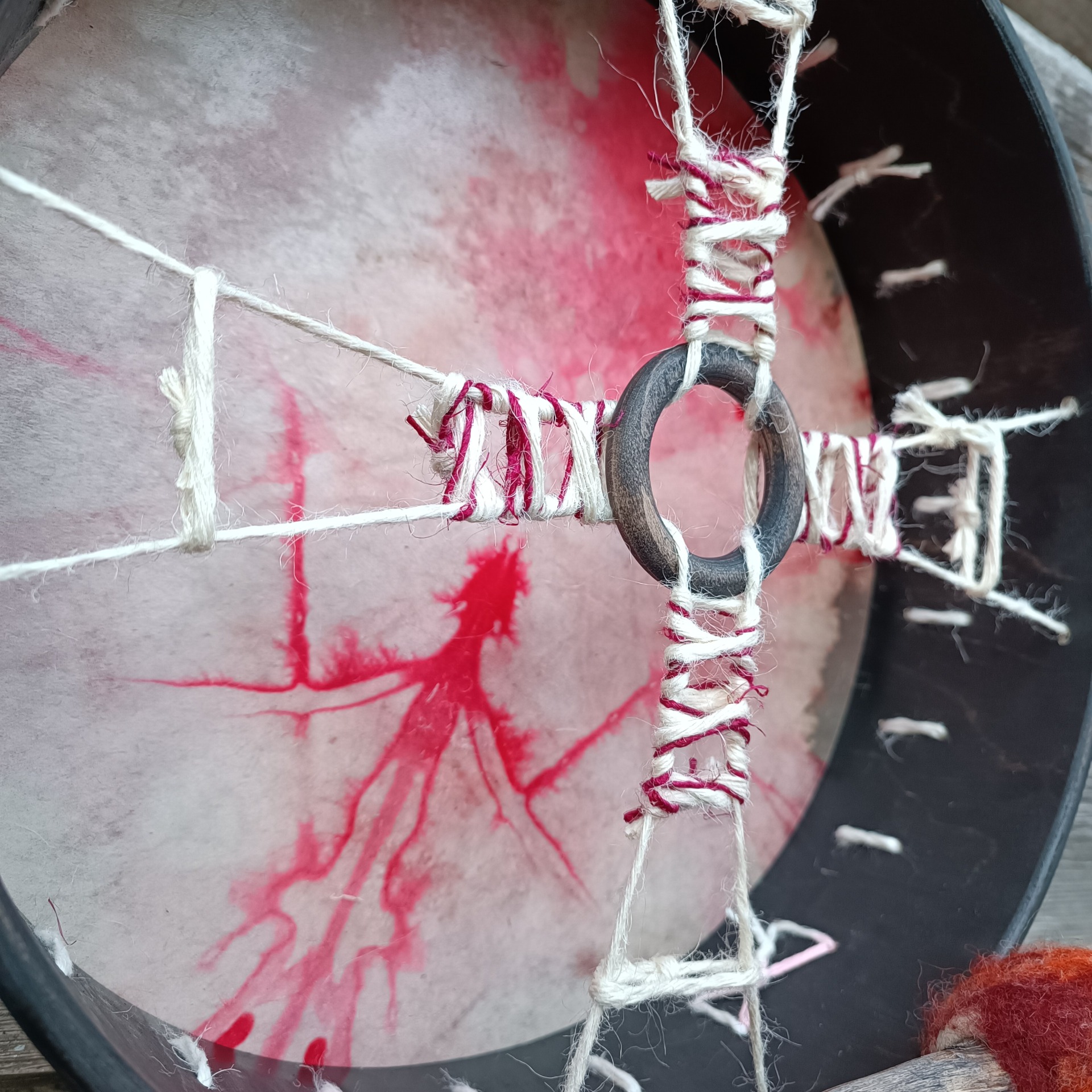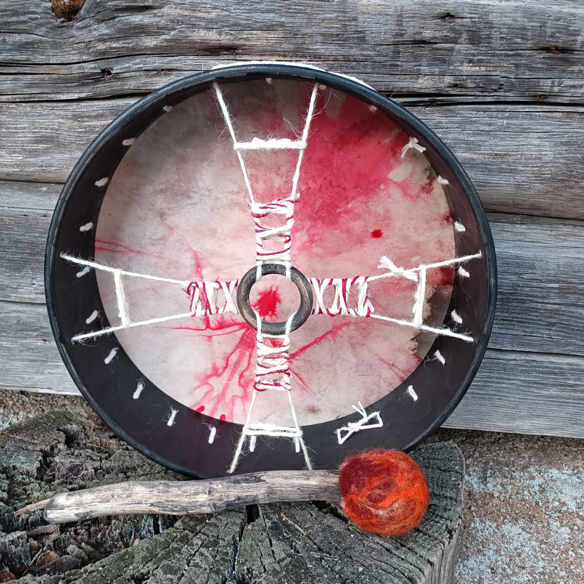 Mukana tulee rummun hoito-ohje sekä ohjeistus shamaanirummun vihkimiseen.
