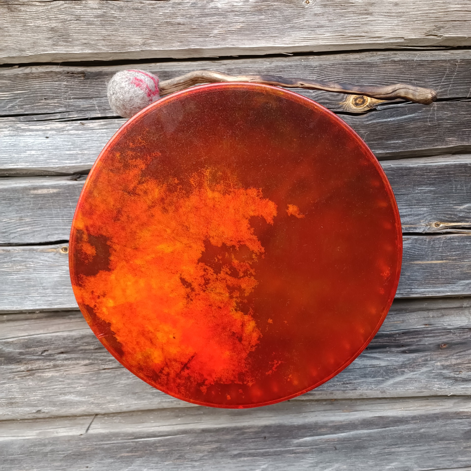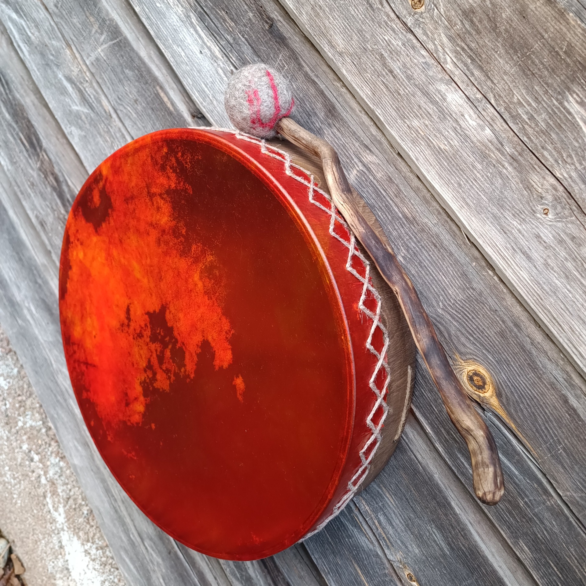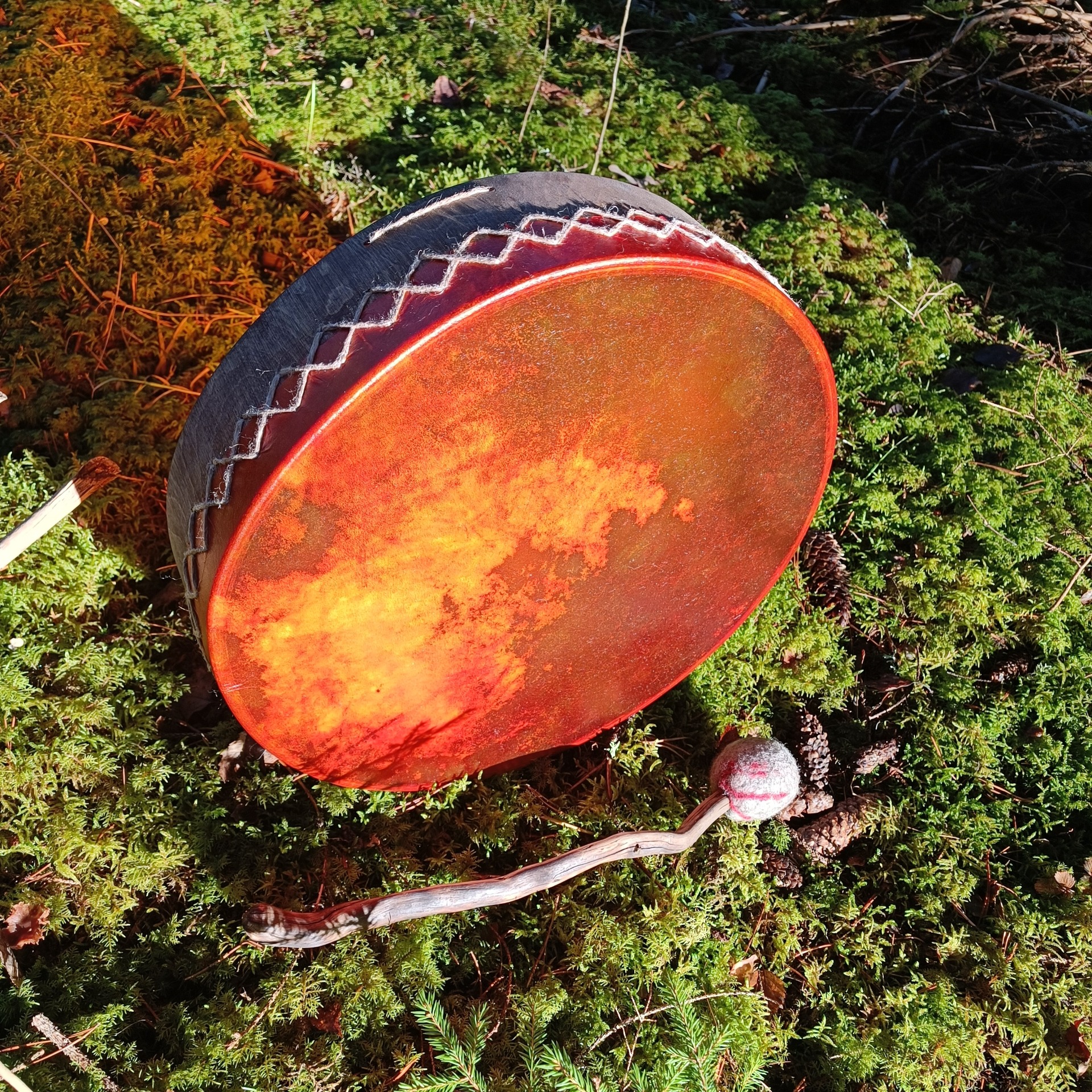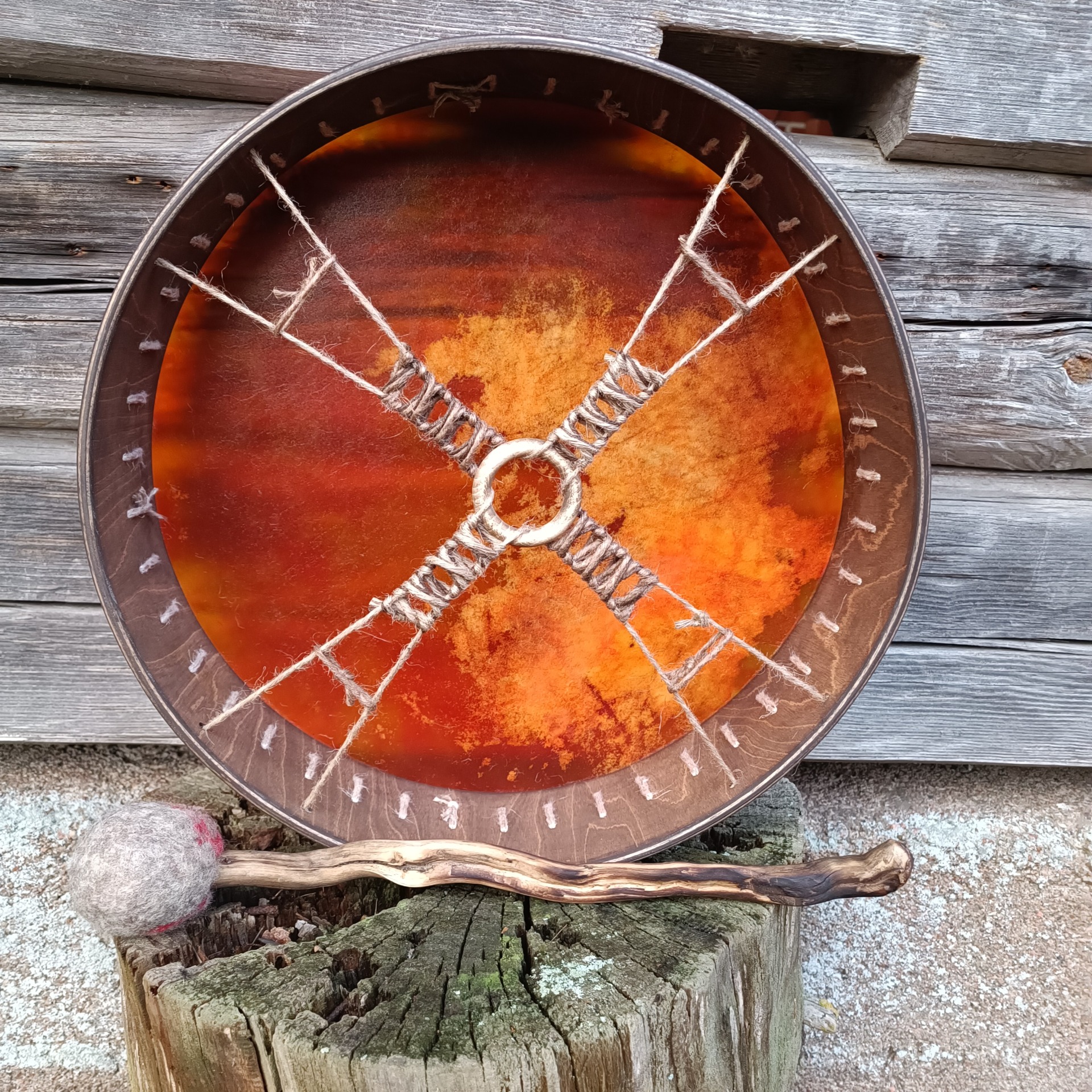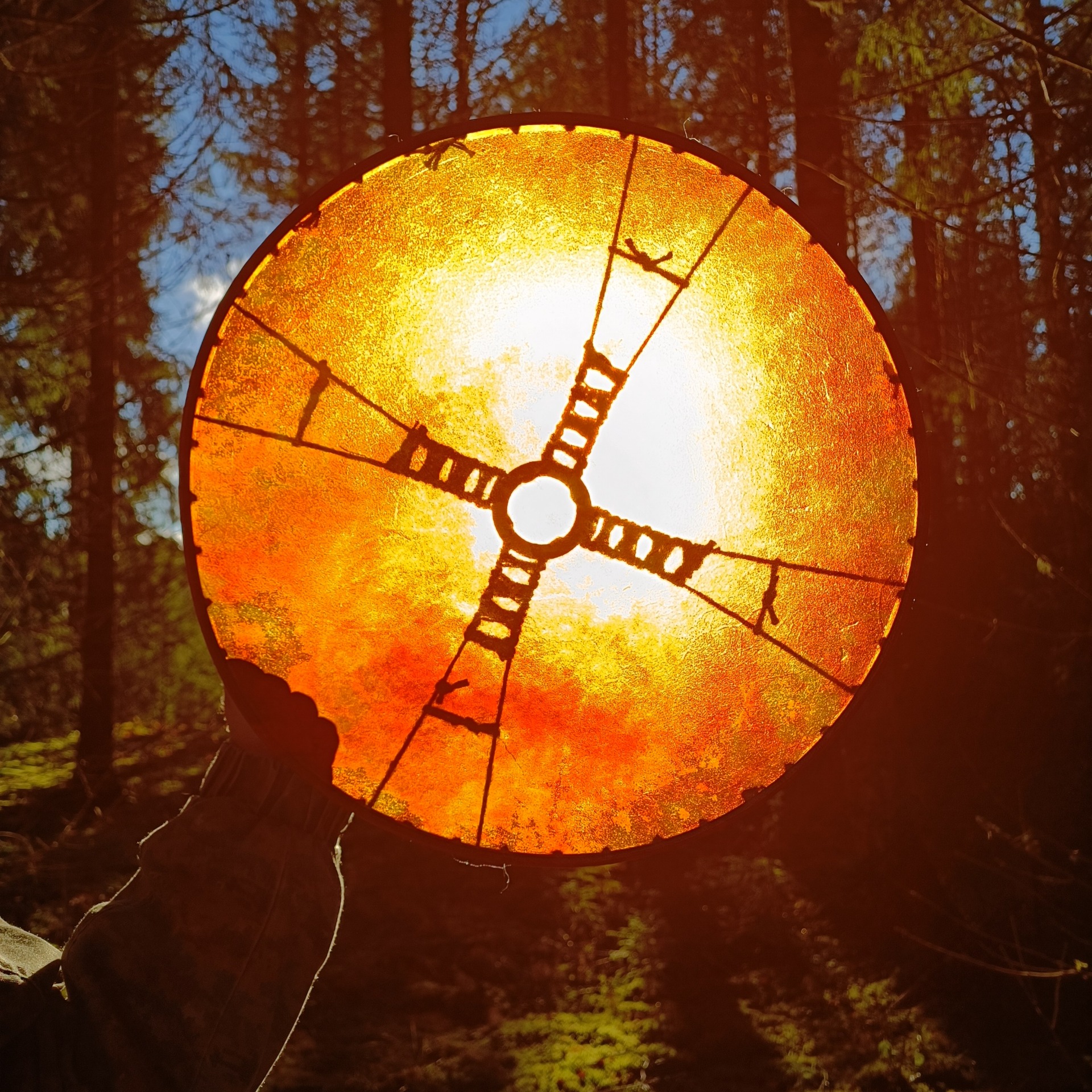Mukaan tulee rummun hoito-ohje ja ohjeistus shamaanirummun vihkimiseen.