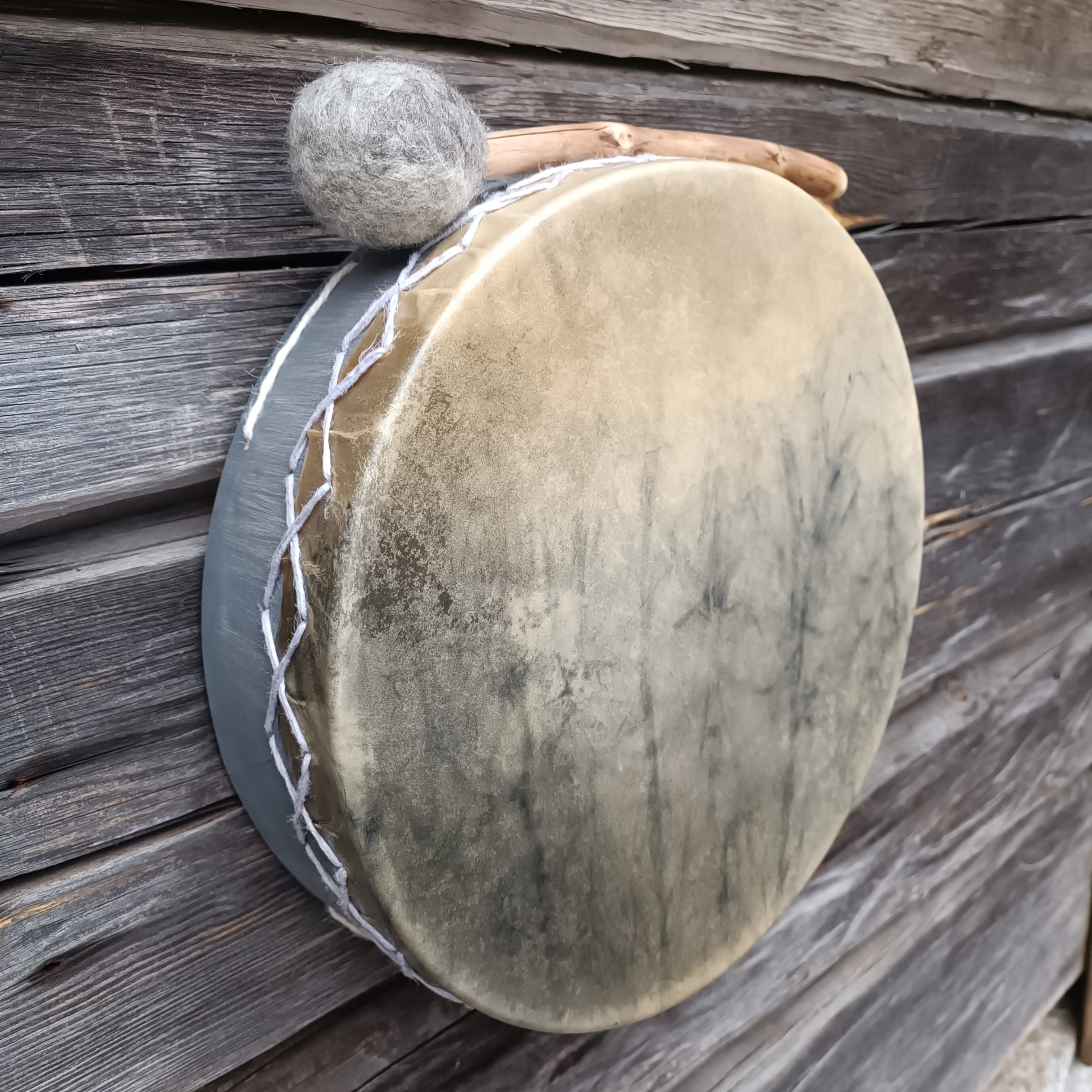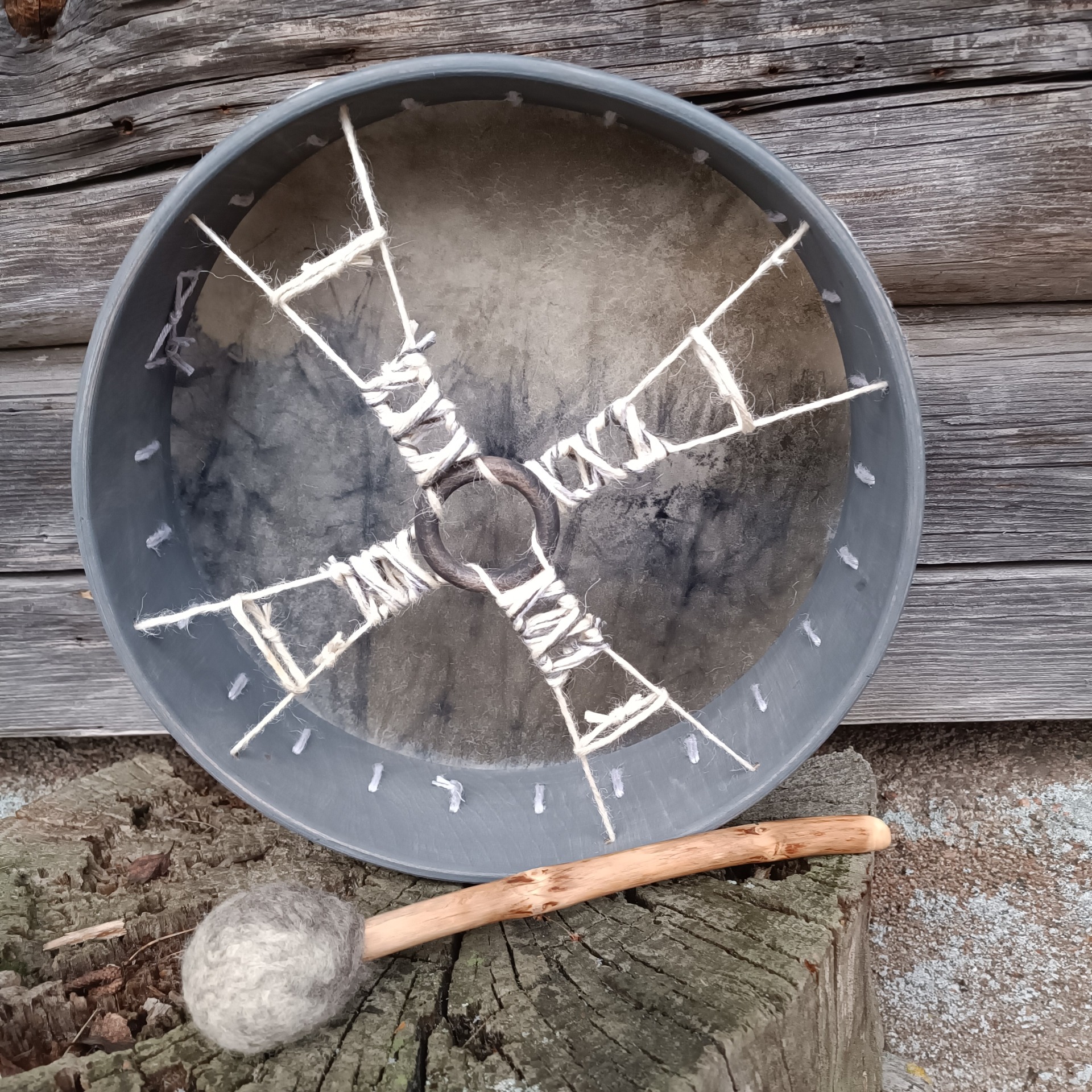 Mukaan tulee rummun hoito-ohje ja ohjeistus shamaanirummun vihkimiseen.