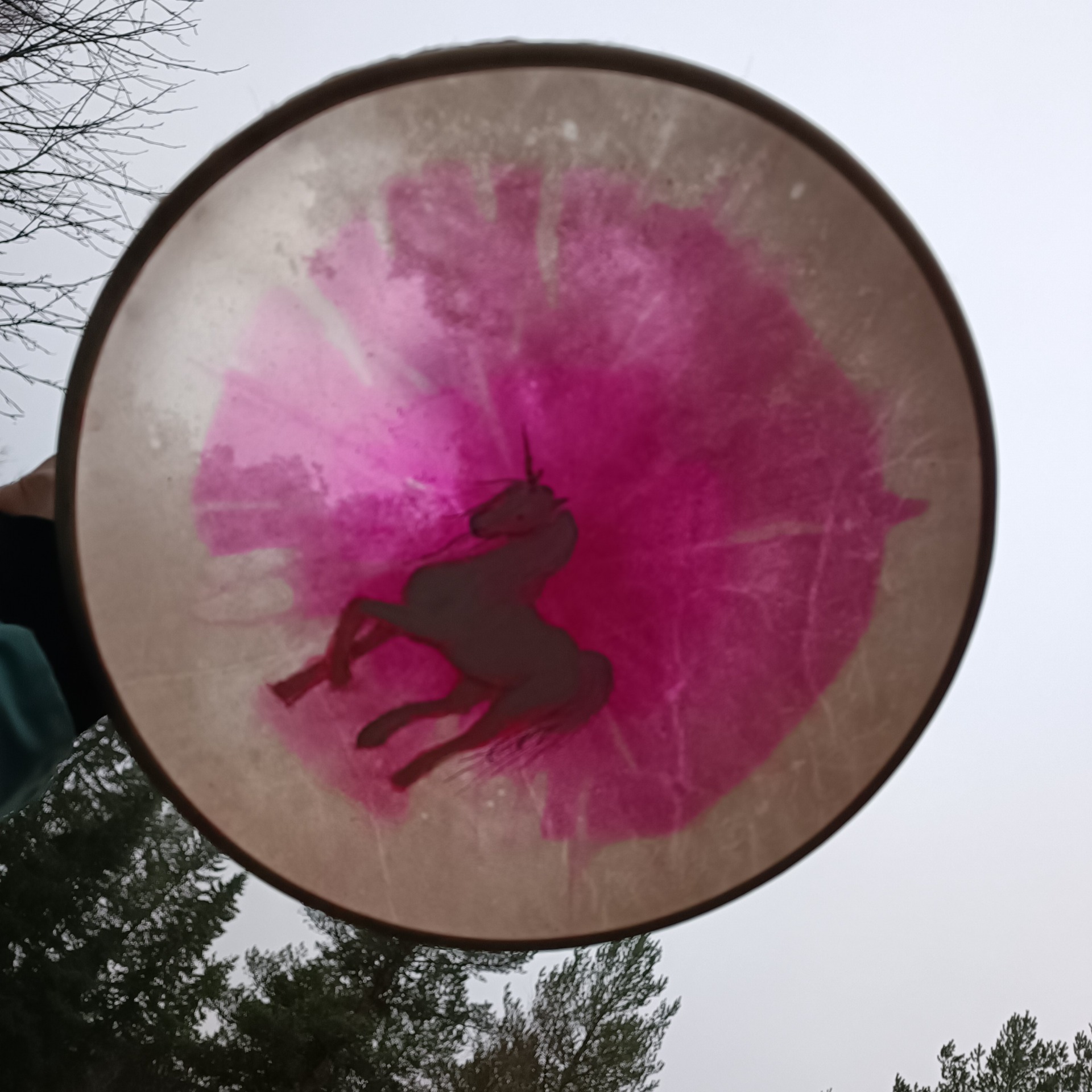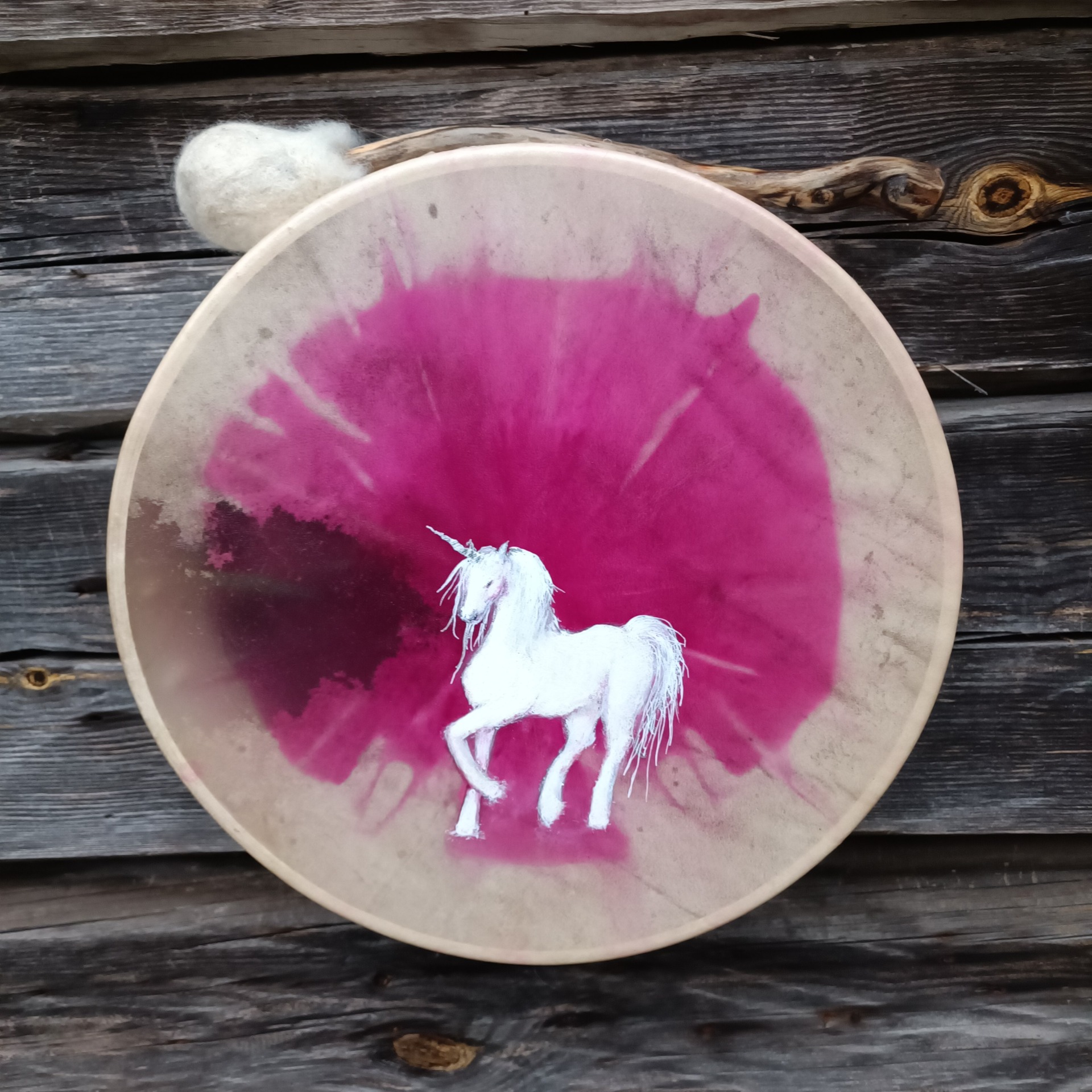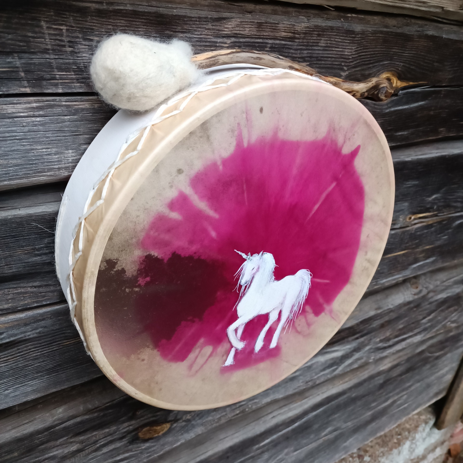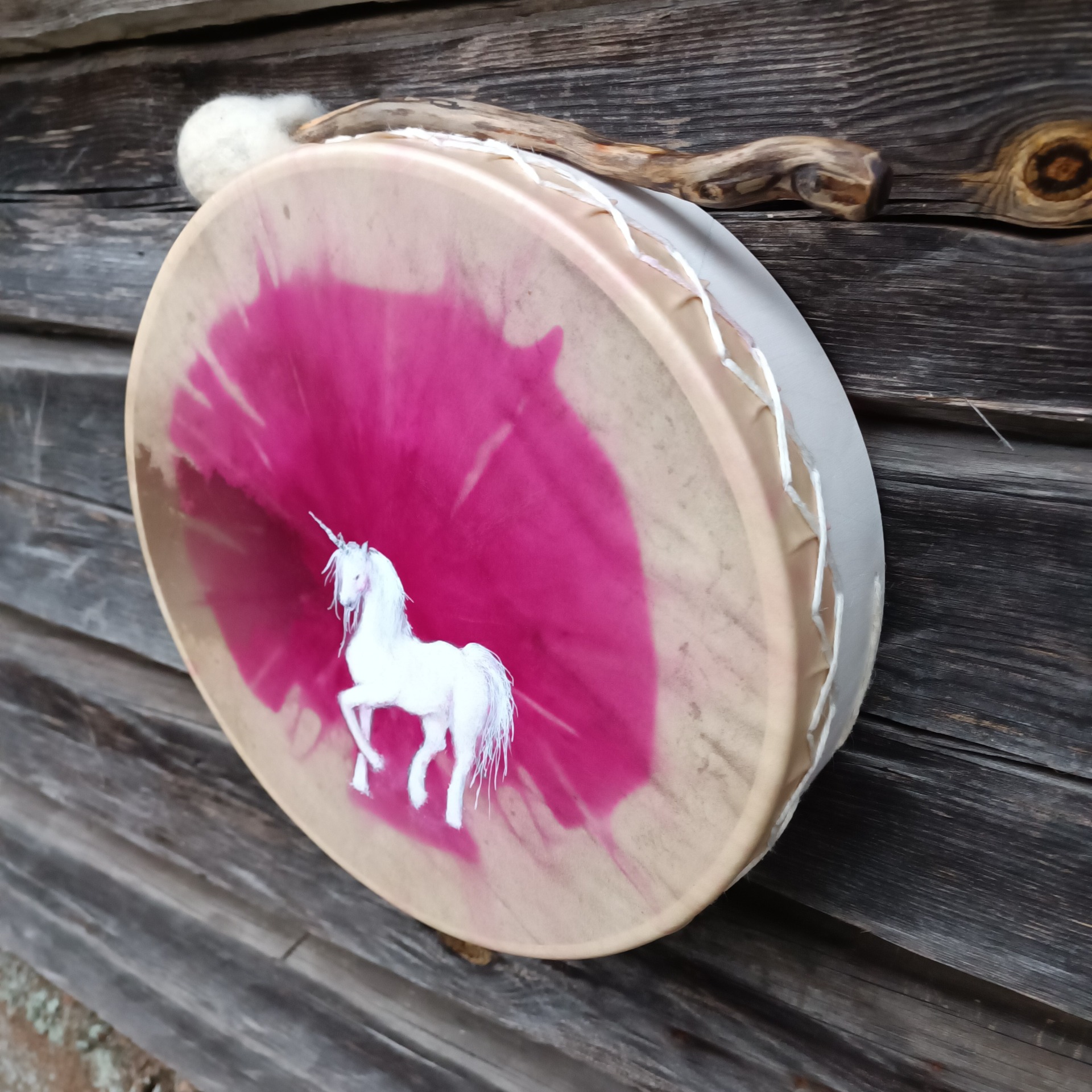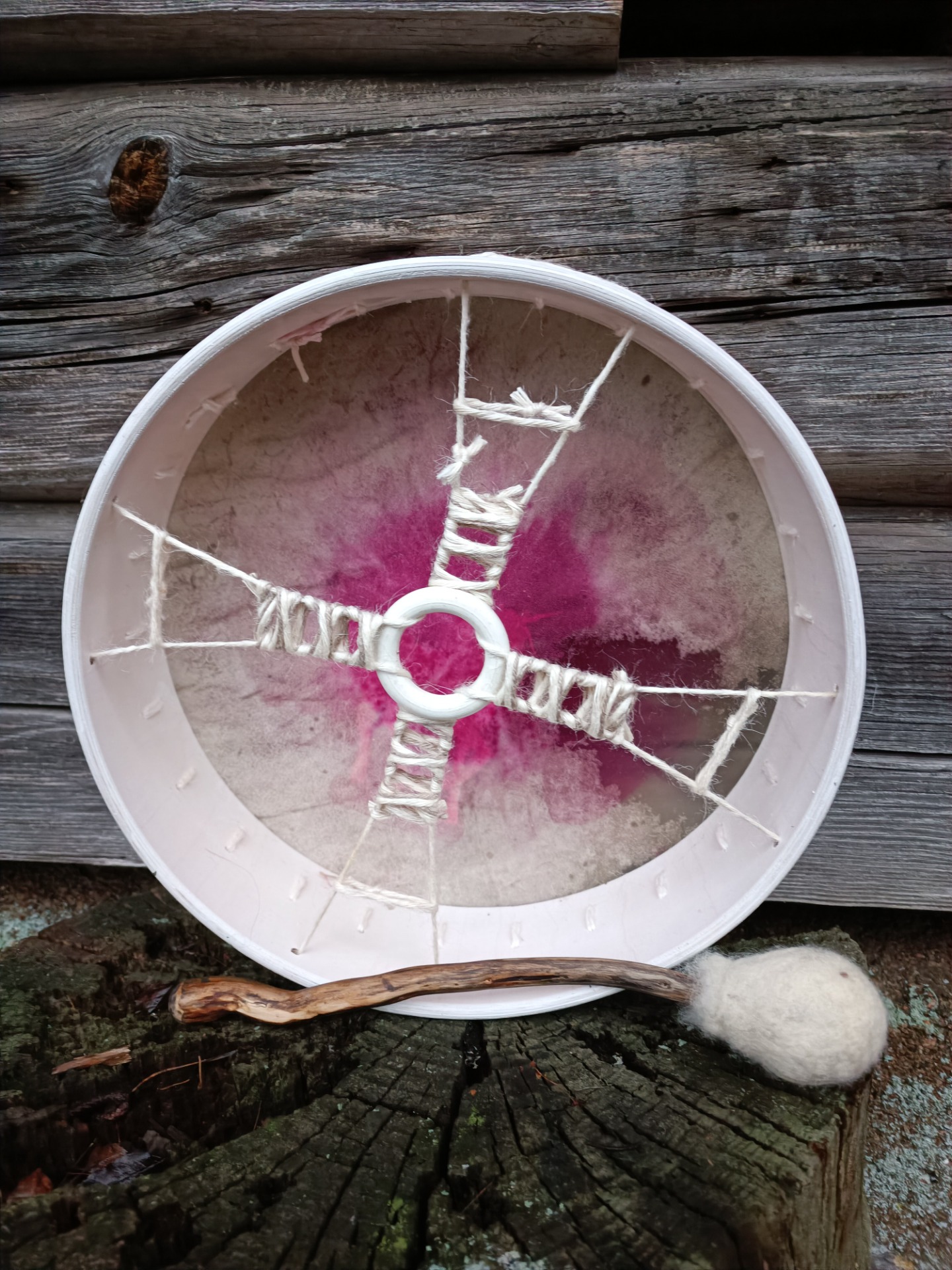 Mukana tulee rummun hoito-ohje ja ohjeistus shamaanirummun vihkimiseen.
